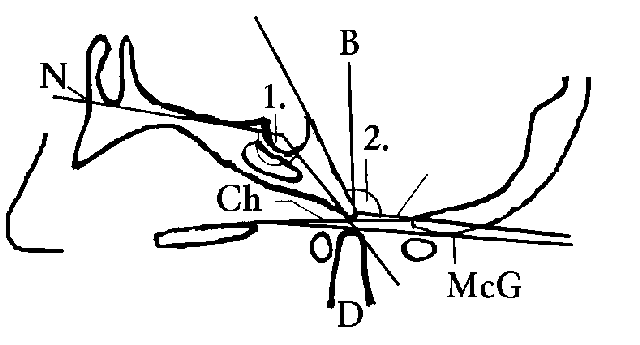 2. Boogardův úhel - for. magnum - klivus - dorzum = 119° - 135°