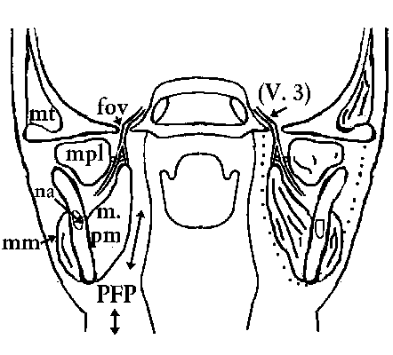 Cisterny, části corpus callosum : r - rostrum, g - genus, c - tělo, s - splenium